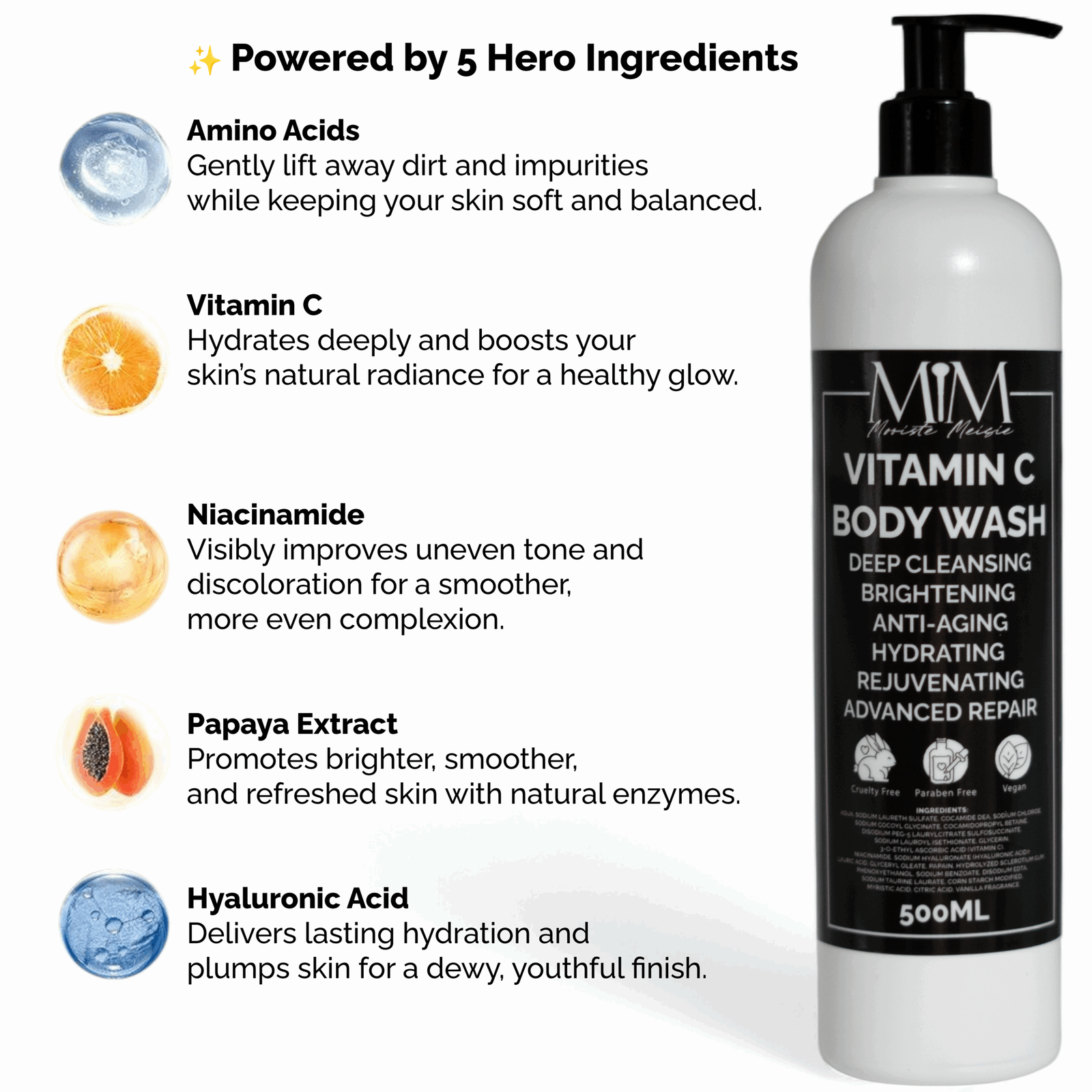 We often focus our skincare routines on the face—but what about the rest of your body? Your skin deserves full-body care that’s just as thoughtful, effective, and luxurious. Enter Mooiste Meisie’s Vitamin C Body Wash, a powerhouse cleanser that goes beyond basic hygiene to deliver real skincare benefits with every shower.